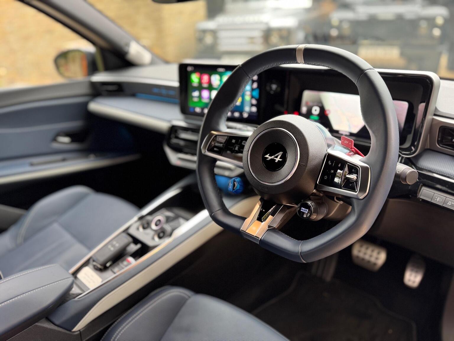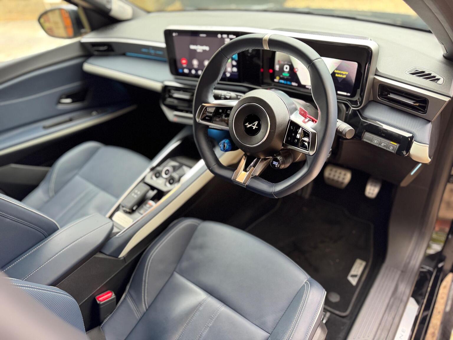 Full Digital Drivers Interface with 10.3in TFT Screen, Full LED Front Headlignts, Function V2L - Vehicle To Load - Mobilize Power to Object, Heat Pump, Heated Front Seats, Heated Steering Wheel, I-Key with Hands Free Function, ISOFIX Attachment System for Front and Rear Passenger Seats, Intelligent Adaptive Cruise Control, LED Daytime Running Lights with Four-Cross Signature, Locking Wheel Bolts, Lower Body Parts - Matt Black, Manual Adjustable Front Seats with Height Adjustment and Electric Lumbar Adjustment, Michelin Pilot Sport 5S, Model and Version Names on Tailgate, Nappa Leather Sports Steering Wheel with Flat and Midpoint, Pedestrian Warning Sound, Pollen Filter, Power Assist Steering, Rear Bench 3 Seats, Rear Camera, Rear Privacy Glass, Rear Spoiler, Safe Distance Alert, Safety Pack, Shark Antenna, Sport Seats, Super Locking System, Tire Pressure Indicator, Traffic Sign Recognition with Overspeed Alert, Tyre Puncture Repair Kit, Vehicle Dynamics Control - Electronic Stability Control - Hill Start Assist, Wireless Smartphone Charger, Wireless Smartphone Replication - Android Auto - Apple CarPlay, 19in Alloy Wheels - Snowflake - Full Black, 3 Rear Seatbelts, 3rd Brake Light, Active Lane Keeping Assist, Alarm Pre-wiring, Alpine Black Chrome Monograms, Alpine Emblem on the Front Fenders, Alpine Sports Chassis, Alpine Telemetrics Premium, Aluminum Door Sills with Alpine Marking, Ambient Lighting Customisable in 4 Zones, Anodized Blue Mat Roof Rod, Automatic Air Conditioning, Automatic Lights and Wipers with Rain Sensor, Automatic Switching of High-Low Lights, Automatic Urban and Interurban Emergency Braking and at Intersections, Black Alpine Logo in Centre of Steering Wheel, Brembo 4-Piston Monobloc Front Brake Calipers - Blue Alpine, Centralized Door Locking, Centre Console with Storage Box and Armrest, Charger - AC 11KW - DC 100KW, Charging Cable Mode 3, Child Locks, Connected Multimedia System Alpine Portal 10.1in with Google Integrated and Devialet Premium Audio, Deactivating the Passenger Airbag, Drive Mode Selector on the Steering Wheel, Driver - Passenger and Curtain Side Airbags, Driver Attention Monitoring System, Driver and Passenger Front Airbags, Driving Pack, Electric Parking Brake with Auto-Hold Function, Emergency Brake Assist, Emergency Call System, First Edition Plate, Floor Mats, Forgetten Seat Belt Alert, French Flags on C-Pillars, Front Bumper - Side Skirts and Diffusor, Front USB and Power Supply, Front and Rear LED Interior Lighting, Front and Rear Power Windows