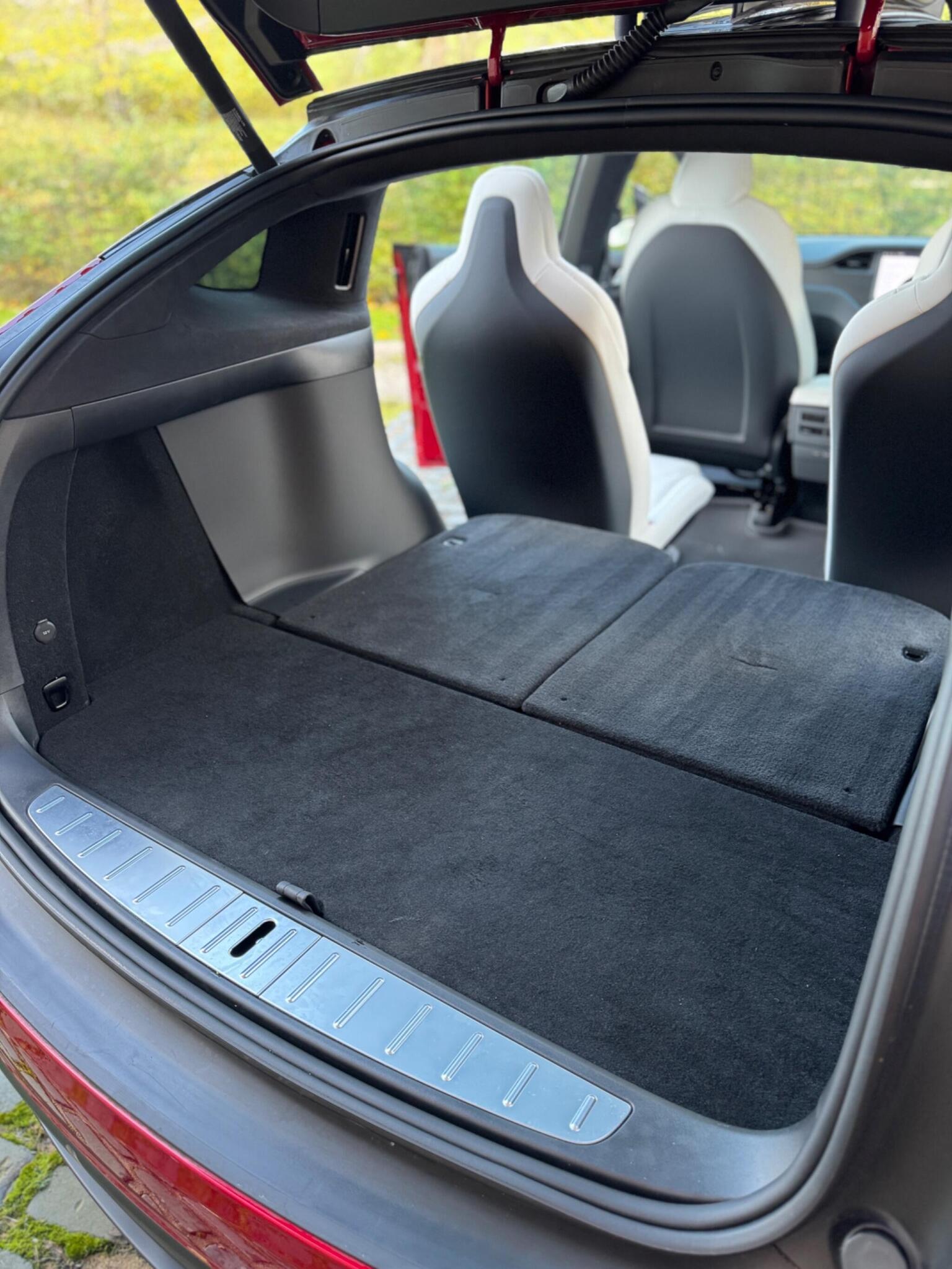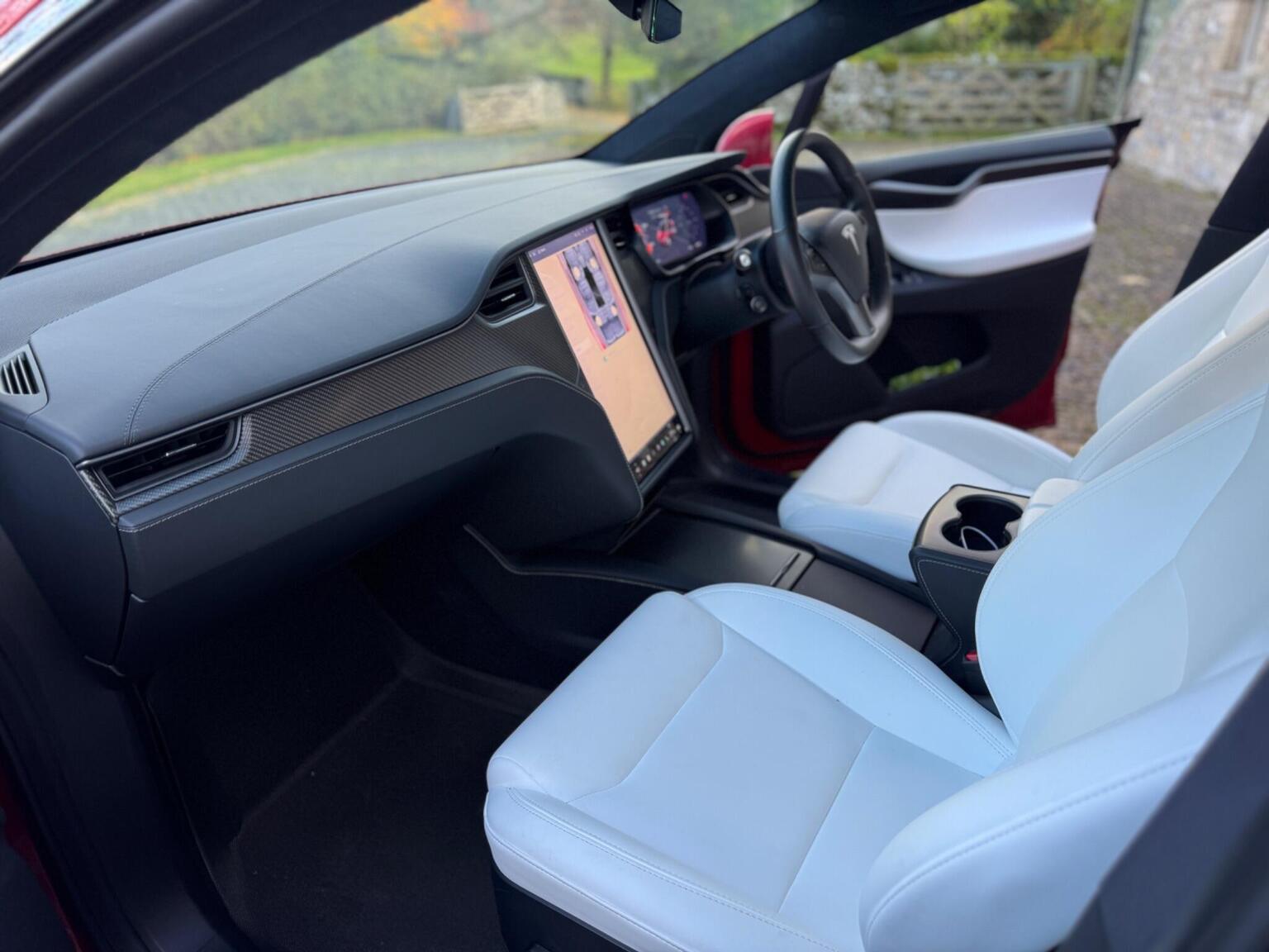 Maps and Navigation with Real Time Traffic Information, Mirrors - Electrochromatic, Motion Activated Intrusion Alarm, Panoramic Windshield, Parking Sensors and Blind Spot Warning, Power Steering - Speed Sensitive, Premium Upgrade Package, Rain Sensing Automatic Windshield Wipers, Rear LED Reading Lights, Rear Taillights - LED, Regular Over the Air Updates, Seats - Front 12-way Electrically Adjustable, Smart Air Suspension, Steering Wheel - 3-Spoke Leather, Subzero Weather Package, Supercharger Enabled, Tesla Red Brake Calipers, Three Position Dynamic LED Turning Lights, Towing Package, Trip Computer, Tyre Pressure Monitoring System, Voice Activated Controls, Washer Nozzle Heaters, 12v Power Outlet, 17in Touchscreen with Media - Communication - Cabin and Vehicle Controls, 20in Alloy Wheels - Silver, ABS - Anti-lock Braking System, Active Safety Technologies, Active Spoiler, Airbags - Curtain, Airbags - Driver, Airbags - Passenger, Armrest - Centre, Audio - Ultra High Fidelity Sound, Automatic LED Headlights, Automatic Rear Liftgate, Basic Autopilot, Carbon Fibre Upgrade, Center Console with Quick Connection Phone Dock, Center Console with Removable Dividers, Climate Control - Dual Zone, Cruise Control, Cupholders - 2x Front Centre Armrest, DAB+ Radio Capability, Daytime Running Lights - LED, Door Mirrors - Heated and Powerfold, Electric Windows - Power One Touch - Front and Rear, Electrically Adjustable Steering Column - Tilt-Telescopic, Electronic Stability Control and Traction Control, Falcon Wing Doors, Four ISOFIX Attachments, Four USB Ports for Media and Power, Front LED Map Lights, Front Trunk, GPS Enabled Homelink, Glass Roof, Handsfree Talking with Bluetooth, Headliner - Alcantara - Black, High Amperage Charger Upgrade, Interior Decor - Dark Ash Wood, Keyless Entry, LED Foglights, Ludicrous Speed Upgrade