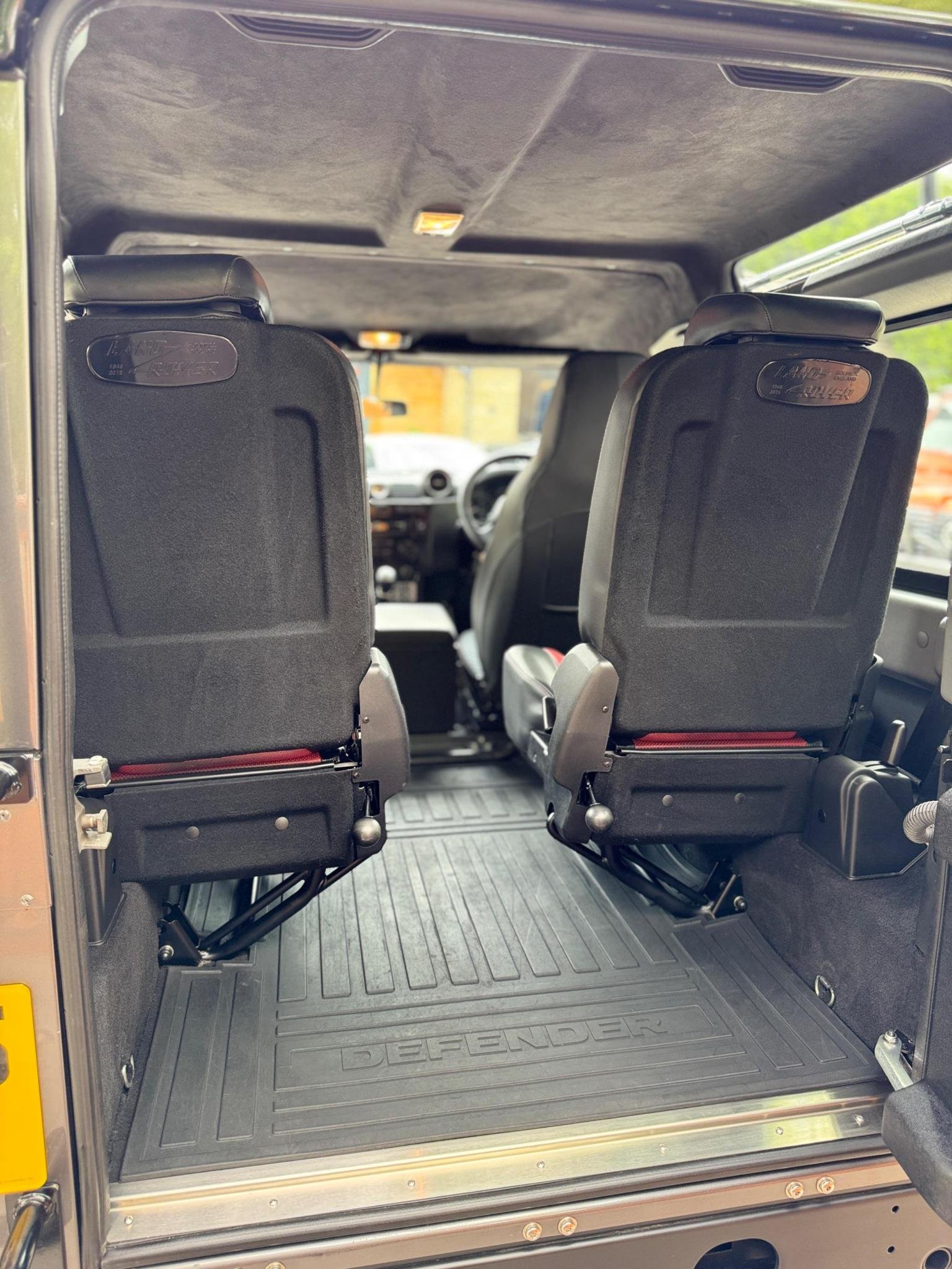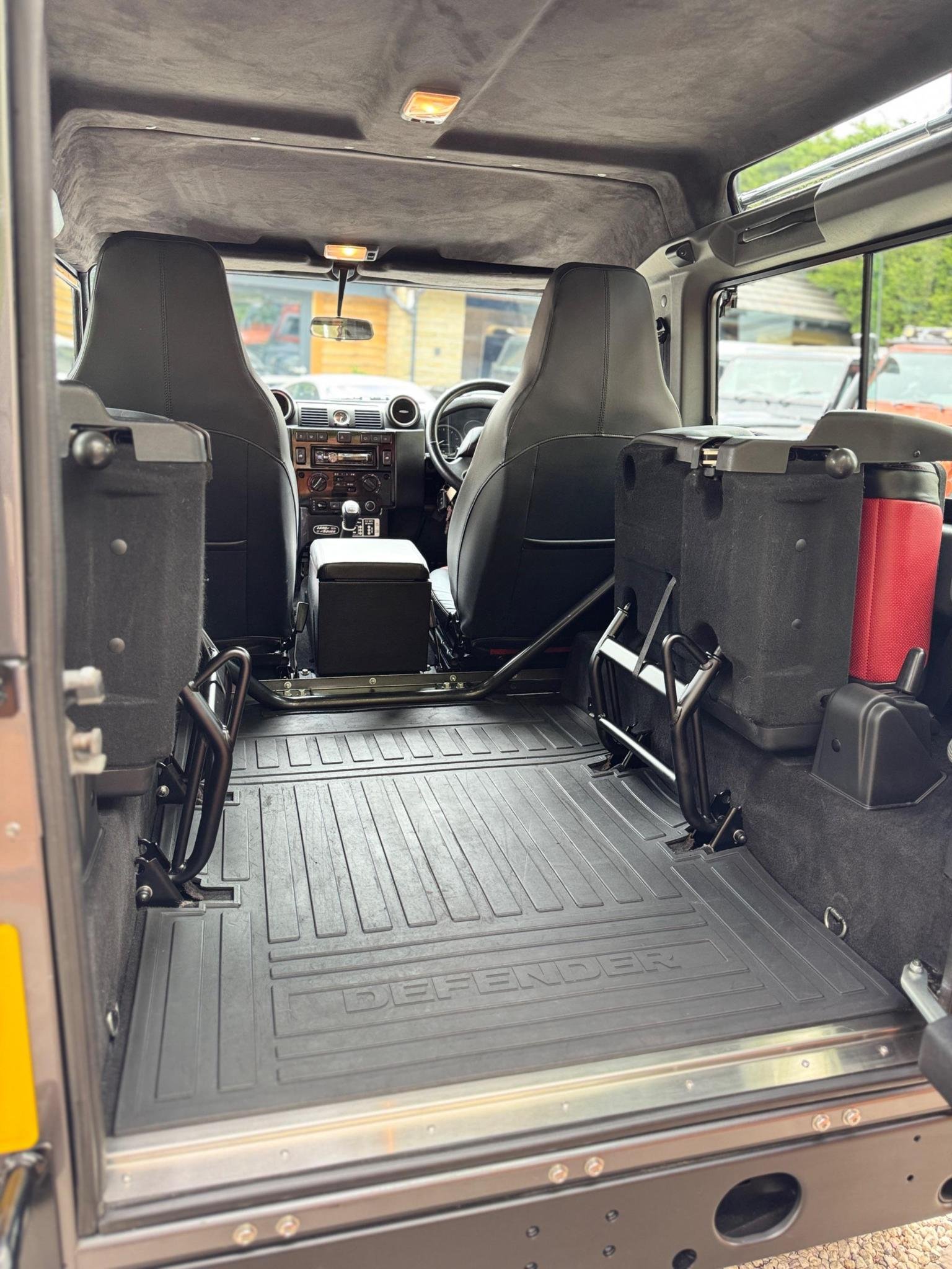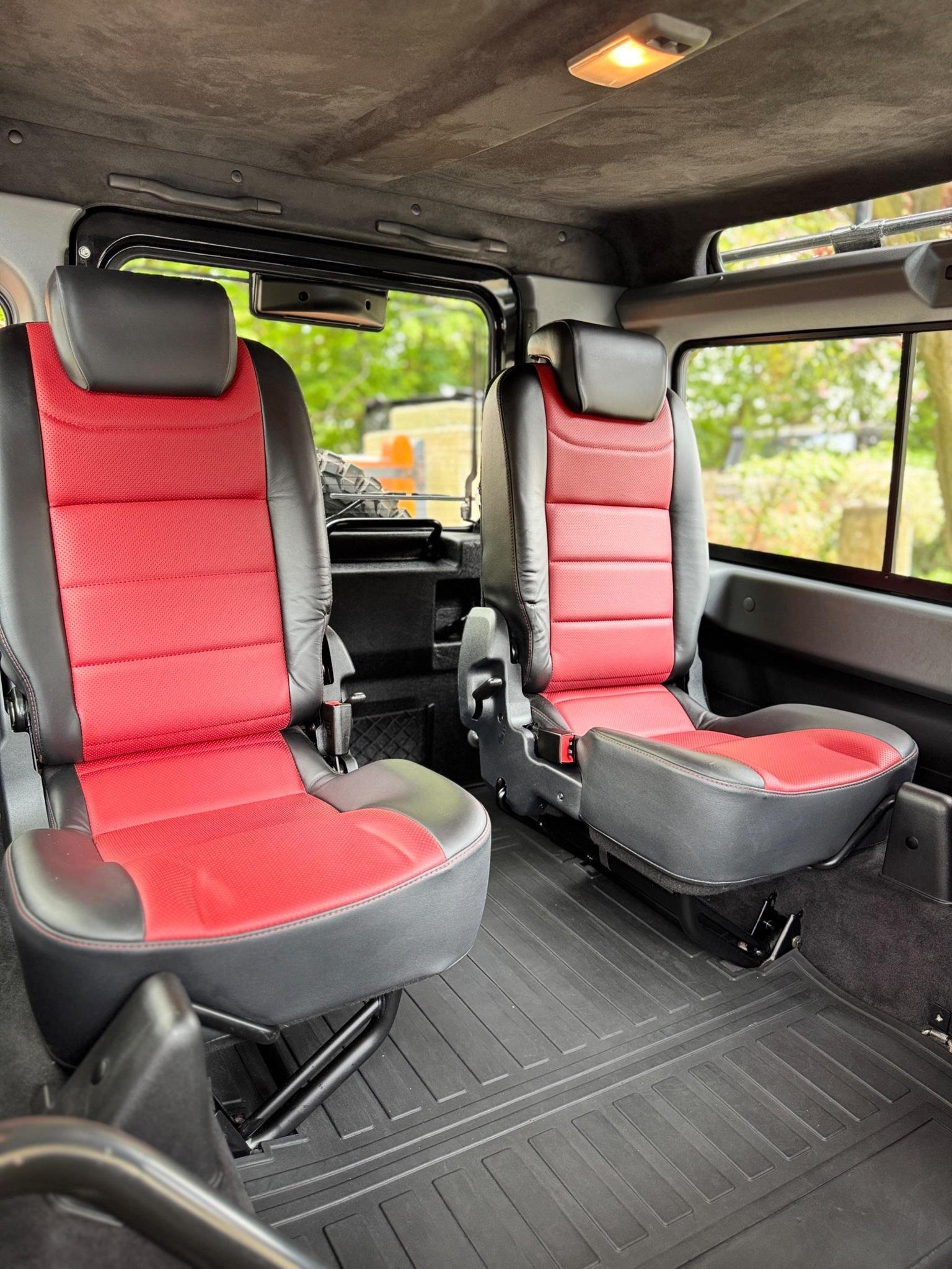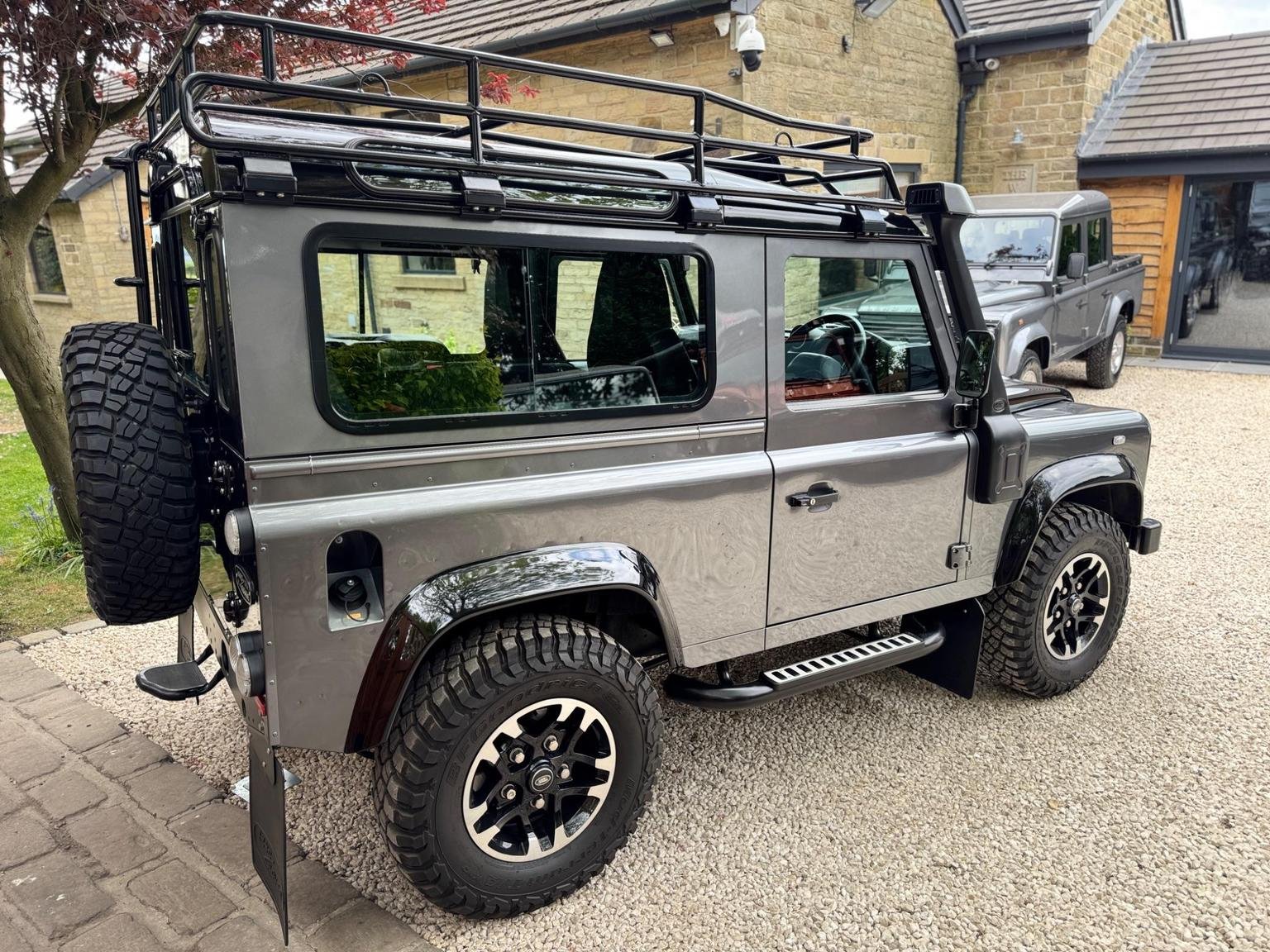 16in Alloy Wheels - Forged Diamond Turned and Gloss Black Split Spoke and Goodyear MT-R Tyre, 4 Speakers, ABS - Anti Lock Braking System, Adventure Edition Metal and Rubber Pedals, Air Conditioning, Alarm System - Perimetric and Volumetric with Immobiliser and Battery Back Up Sounder 433mhz, Audio System - CD-Radio-MP3-AUX, Auxiliary Points - Front, Bluetooth Phone Connection, Bright Aluminium Perforated Leather Wrapped Interior Door Handles, Bright Pack, Carpet Mats - Front and Rear, Clear Indicator Lenses, Cold Climate Pack, Convenience Pack, Cubby Box - Hi-line in Vinyl, Cupholders x2, DSC - Dynamic Stability Control, Defender Bonnet Script - Atlas Finish, Door Panels and Front Passenger Facia in Leather, ETC - Electronic Traction Control, Expedition Roof Rack, Front Centre Stowage Compartment, Full Size Spare Wheel, Glass - Rear Quarter Windows, Grille and Headlight Surrounds - Santorini Black, Headlights - LED Projector, Headlining - Black, Heated Front Seats, Heritage Logo Mudflaps - Front and Rear, Leather Gear Knob, Leather Steering Wheel, Locking Wheel Nuts, Perforated Leather Facia Grab Handle, Pollen Filter, Power Assisted Steering, Rear Access Ladder, Rear Glazed Doors, Rear Window Wash-Wipe System with Intermittent Function, Remote Central Locking, Roof - Black Contrast, Roof - Station Wagon, Rubber Floor Trim, Santorini Black Centre Console, Santorini Black Contrast Bonnet with Body Coloured Bonnet Hinges, Santorini Black Contrast Rear Door with Santorini Black Hinges, Santorini Black Facia, Seat Map Pockets, Side Runners, Sliding Side Windows, Snorkel, Step - Rear, Stowage Net - Rear Door, Trim - IP insert - Graphite, Under Ride Sill Protection, Under Ride Sump Protection, Wheel Arches - Santorini Black, White Tail and Indicator LED Lights, Windows - Electric Front, Windows - Heated Rear Windscreen, Windows - Tinted Front and Side, Windscreen - Heated, Windscreen Wash-Wipe System with Variable Intermittment Function